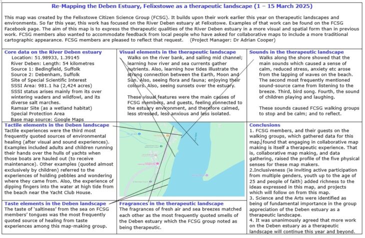 - Collaborative map making is an effective way to summarize experiences of the River Deben Estuary and Landguard Nature Reserve.